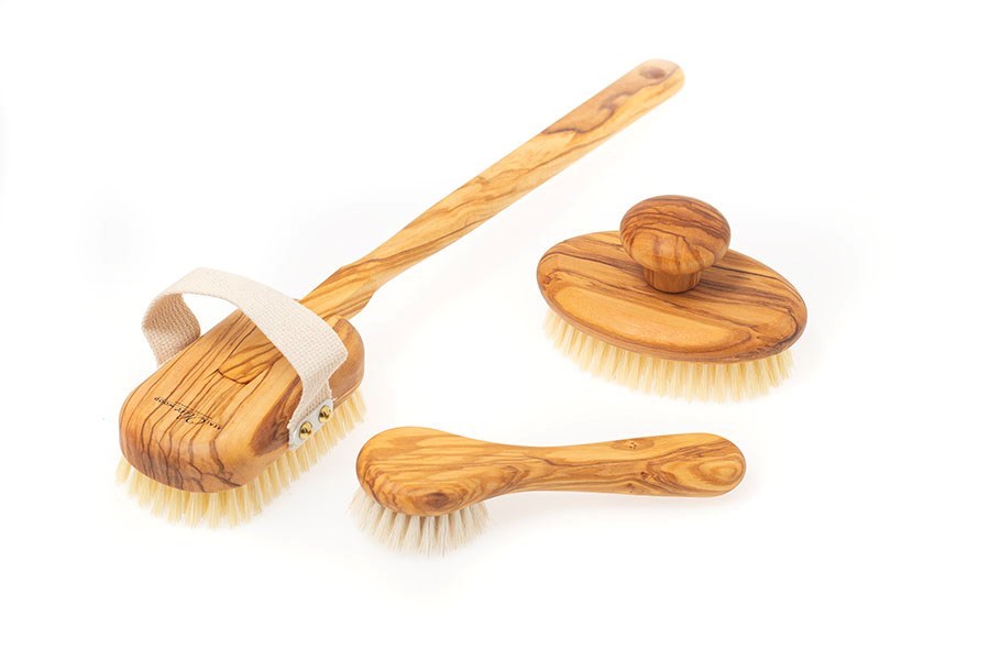 Z jemných konských vlasov - kefka je o trošku tvrdšia ako z kozích vlasov, avšak stále veľmi príjemne mäkká na masáž a čistenie tváre. Olivové drevo je tvrdé, ale príjemné na dotyk.
