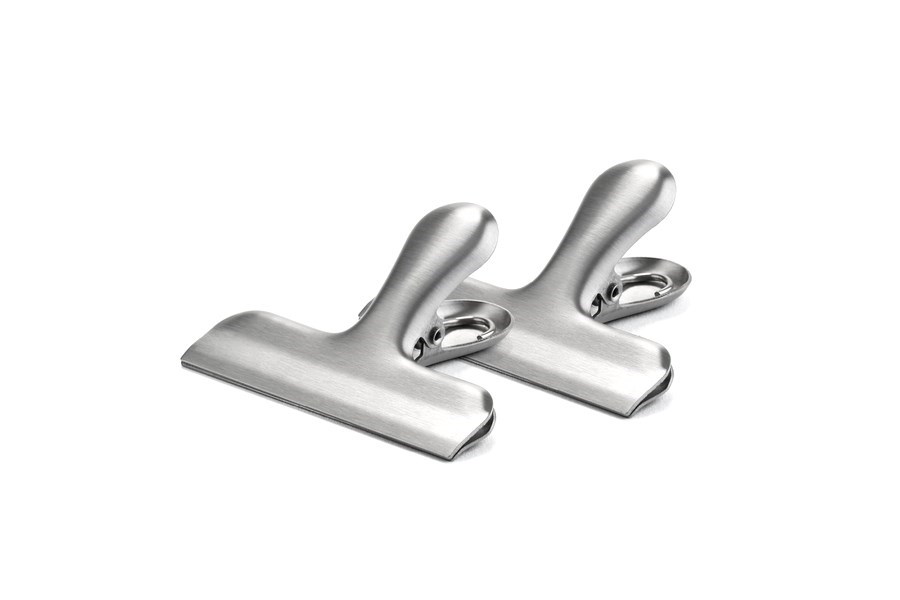 Kvalitný, odolný kovový štipec, ktorý môžete použiť napríklad na zatvorenie načatého vrecka s potravinami.
