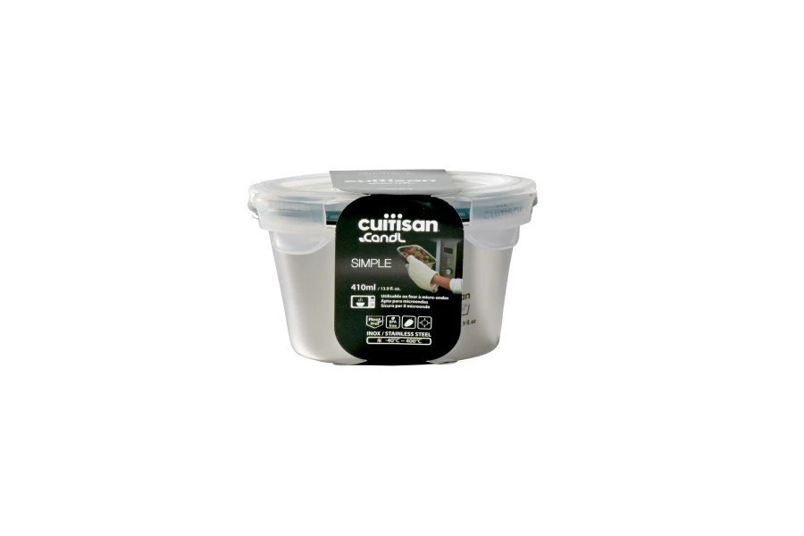 Nerezová dóza značky Cuitisan je ľahká a pevná vzduchotesná nádoba vhodná do do umývačky riadu, chladničky, mrazničky, rúry aj mikrovlnky. Odolá teplotám od -40°C do 400°C.