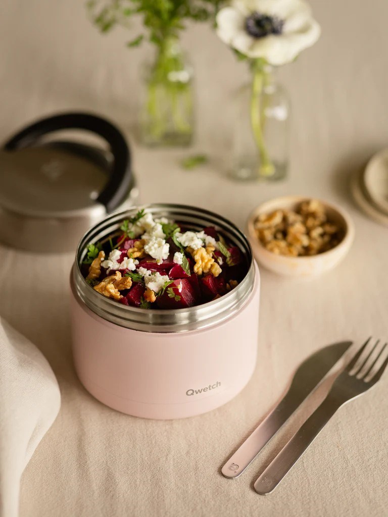 Praktický, ľahký a utesnený termoobedár od značky Qwetch, vyrobený z nehrdzavejúcej ocele. Jedlo udrží teplé až 5 hodín alebo chladné až 7 hodín. Okrúhly nerezový obedár je praktický a ľahko sa udržiava čistý.