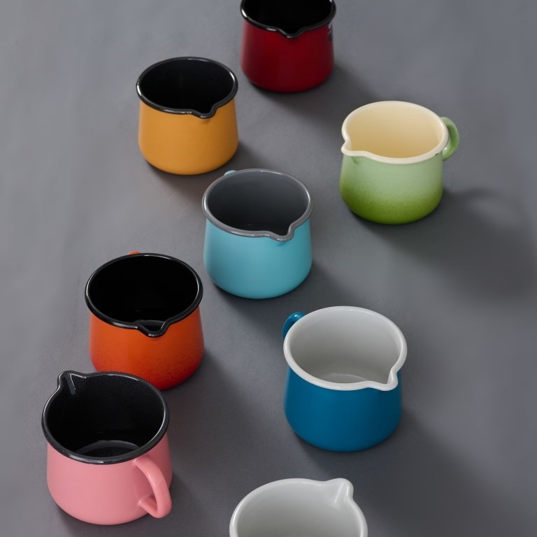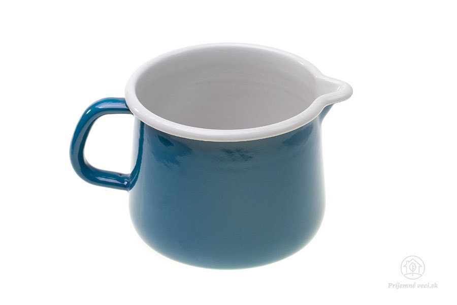Smaltovaný krčah so zobáčikom je stále obľúbeným kuchynským náčiním na rôzne účely.