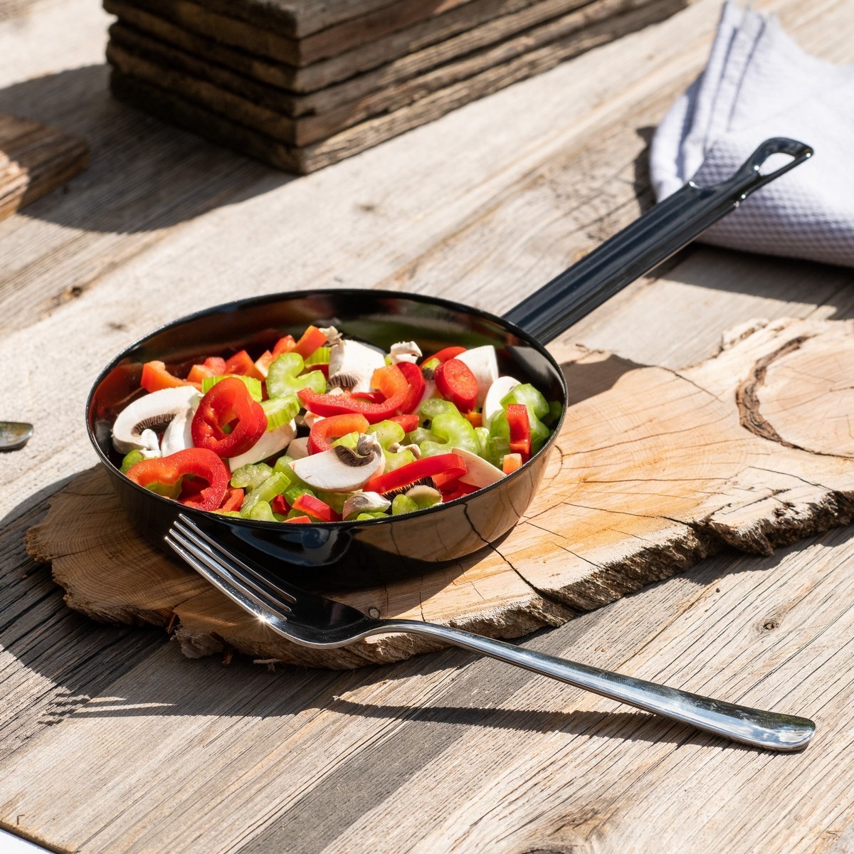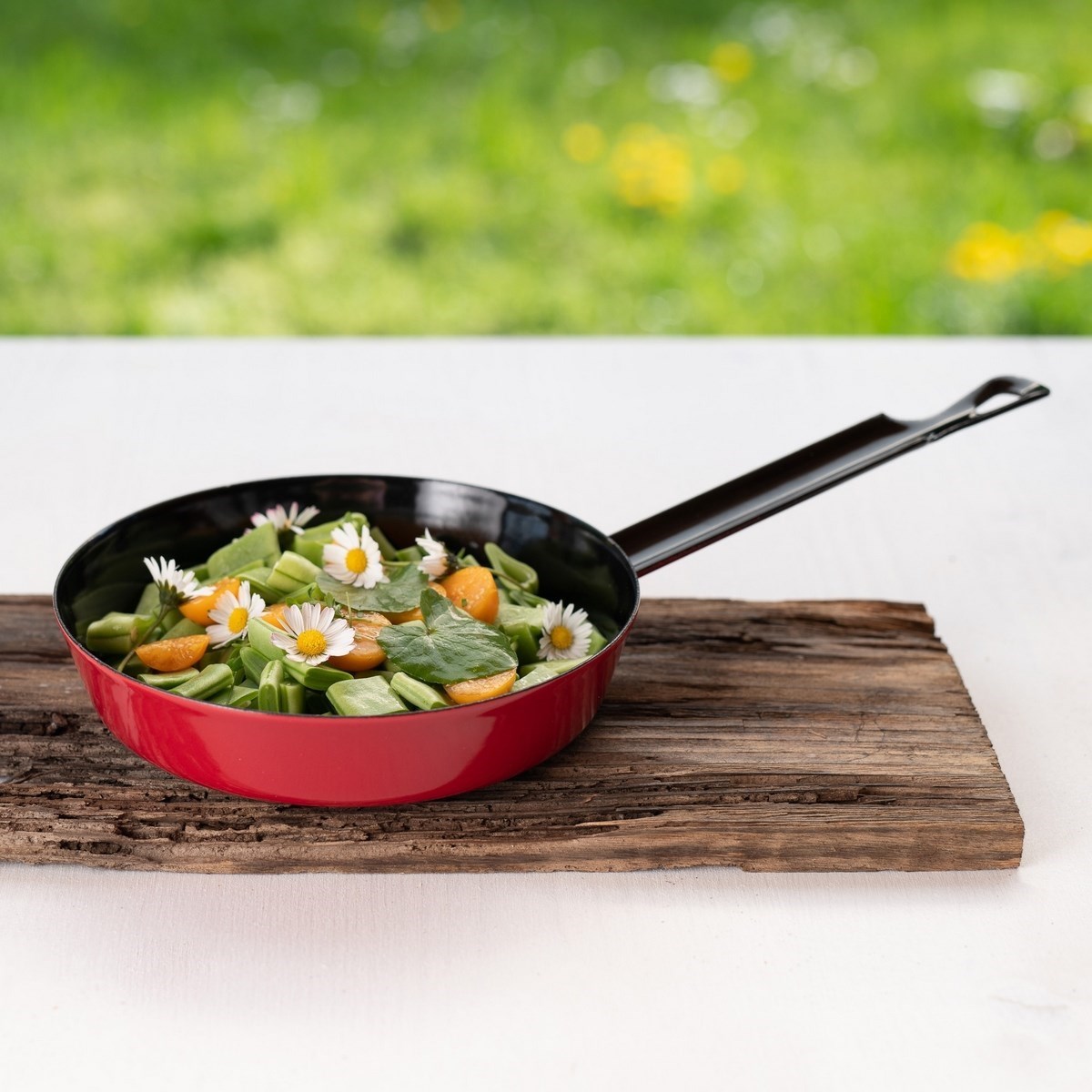 Nadčasová smaltovaná mini panvica je ideálna nielen pre jednu domácnosť na rýchle a jednoduché vyprážanie malých porcií, ale je tiež ideálna na prípravu omáčok. Odporúčame používať chňapky - rúčka môže páliť.