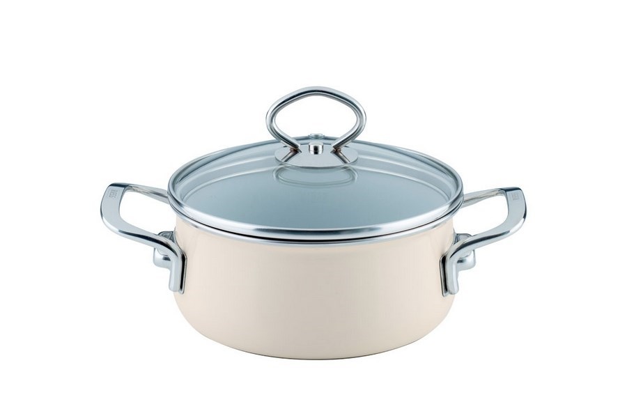 Smaltovaný hrniec je vybavený sklenenou pokrievkou, aby ste mali prehľad o pripravovanom jedle. Ergonomicky tvarované rukoväte na hrnci aj na pokrievke sú z nehrdzavejúcej ocele.