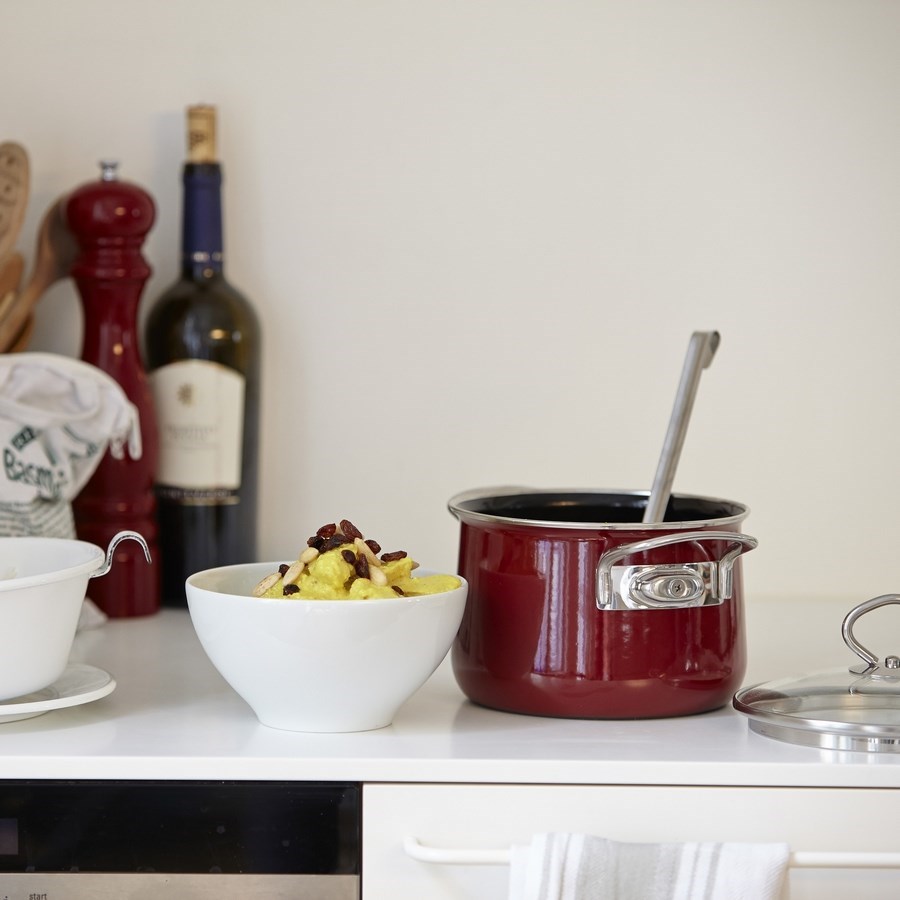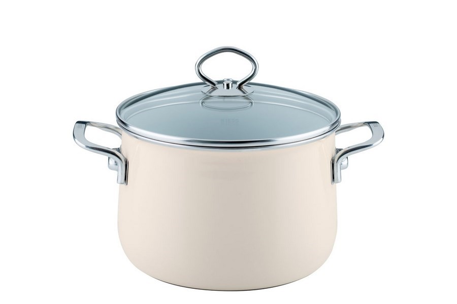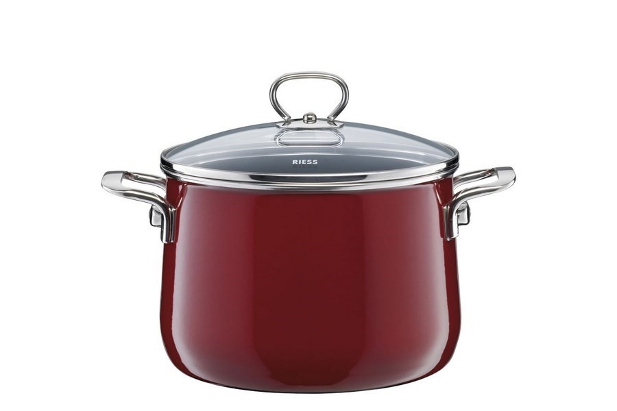 Smaltovaný hrniec je vybavený sklenenou pokrievkou, aby ste mali prehľad o pripravovanom jedle. Ergonomicky tvarované rukoväte na hrnci aj na pokrievke sú z nehrdzavejúcej ocele.