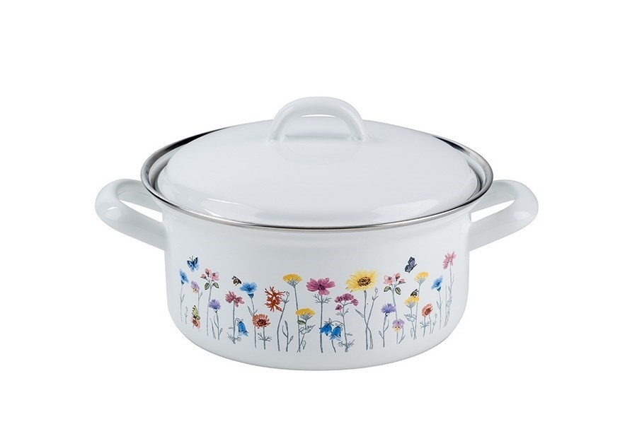 Klasický smaltovaný hrniec s pokrievkou. Vhodný na všetky typy varičov, aj do rúry - odporúčame používať chňapky, pretože držadlá aj pokrievka môžu páliť.