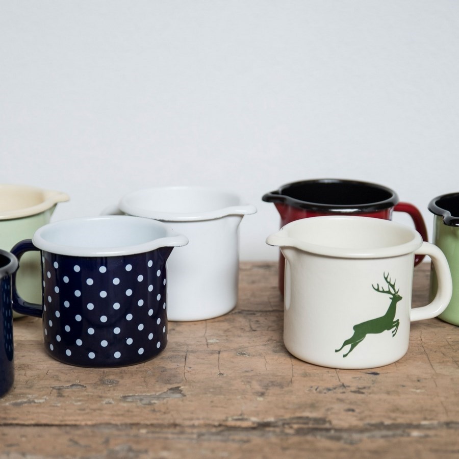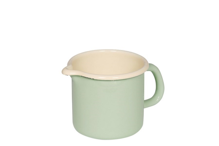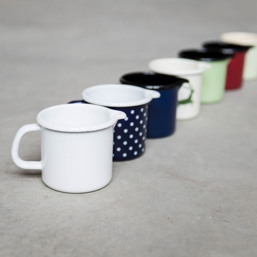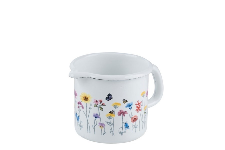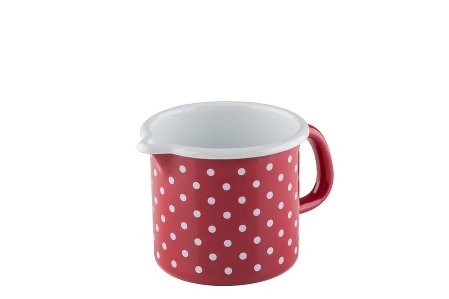 Smaltovaný krčah so zobáčikom je stále obľúbeným kuchynským náčiním na rôzne účely. Je k dispozícii v rôznych farebných prevedeniach - cena sa môže líšiť v závislosti od dizajnu.