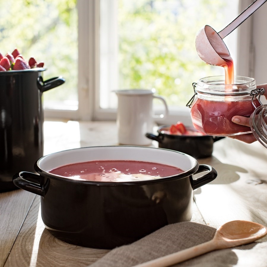 Séria týchto čiernych hrncov je vyrobená z mimoriadne pevného železného plechu, ktorý je pokrytý najkvalitnejším sklom. Sú ideálne na varenie, dusenie aj pečenie a vhodné pre všetky typy varičov – vrátane indukcie a varenia na otvorenom ohni.