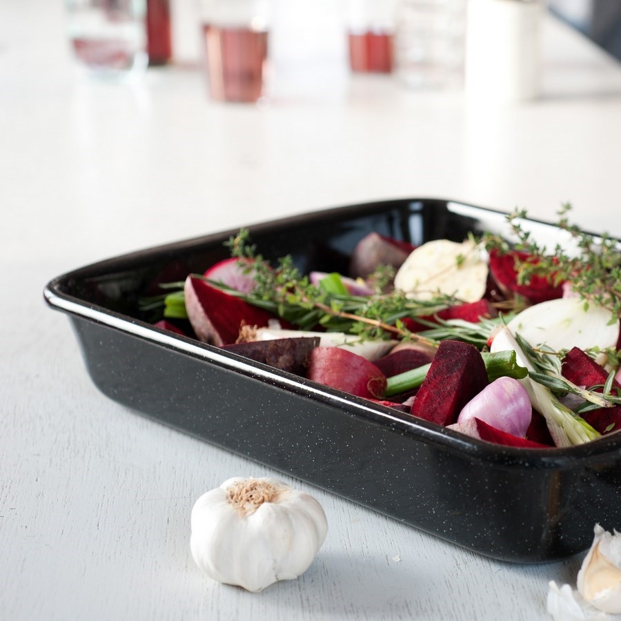 Univerzálny smaltovaný plech na všetko, čo treba upiecť alebo zapiecť - mäso, koláče, cestoviny,... V rôznych farebných prevedeniach - cena sa môže líšiť v závislosti od dizajnu.