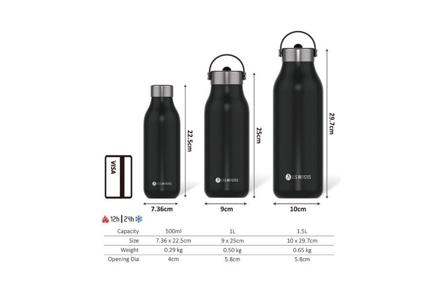 Dvojstenná (2x nerezová stena + izolačná vrstva z medi + termoizolačná vrstva) termoska z nerezovej ocele 18/10 je zdravou voľbou na nosenie vody stále so sebou. Vyhnete sa kupovaniu nápojov v plastových/tetrapakových obaloch.