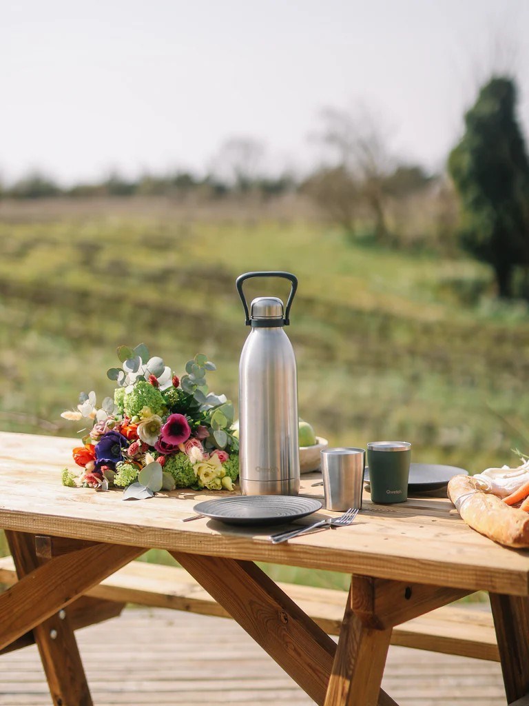 Termoska na nápoje z antikóru - od značky Qwetch. Termofľaša má objem 1,5l. Zásoba pitia na cesty pre celú rodinu :-)